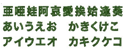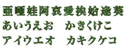 書体は、「楷書体」(標準字体)が一般的です。それ以外に「明朝体」「ゴシック体」「行書体」、アルファベットであれば「ゲタ文字(Century)」「筆記体」も可能ですが、若干割高になります。糸色は、「紺」「黒」「赤」「緑」「シルバーグレー」「青」「白」「金茶」の8色です。